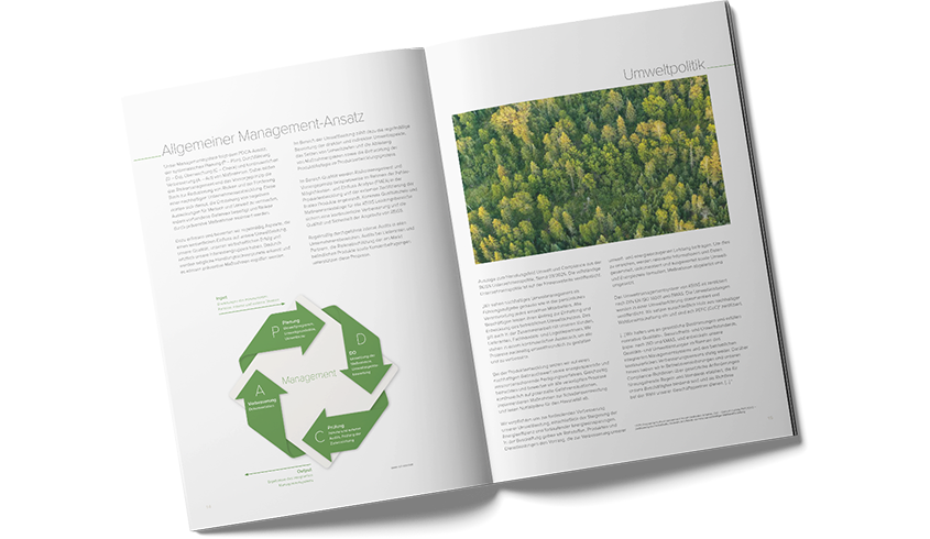 Efficient resource management, ecological product design and a sustainable location policy are decisive success factors for our company and reflect our responsibility for future generations. In our economic activities, we have both a direct and indirect influence on the environment and on society.