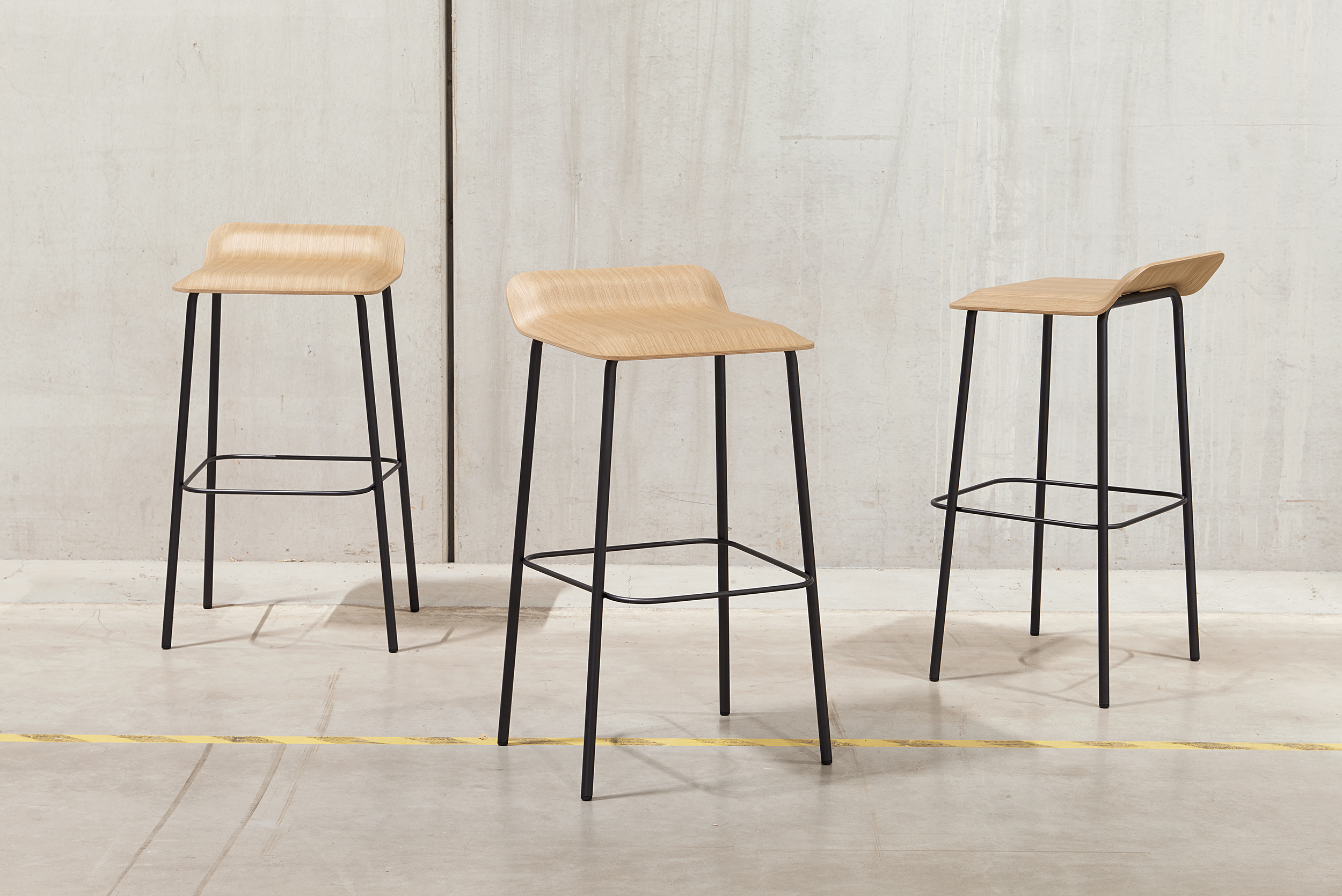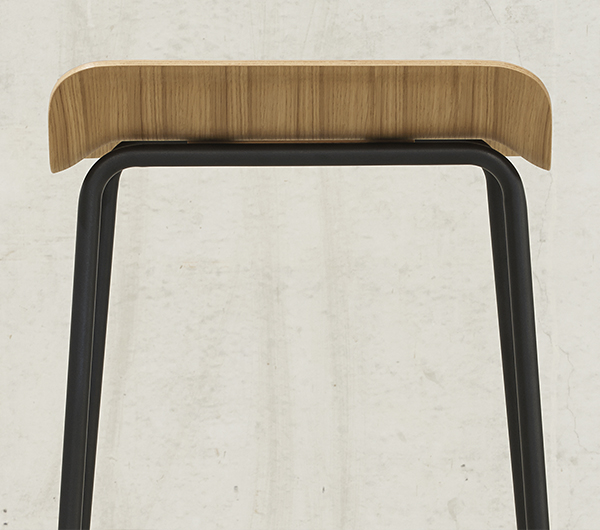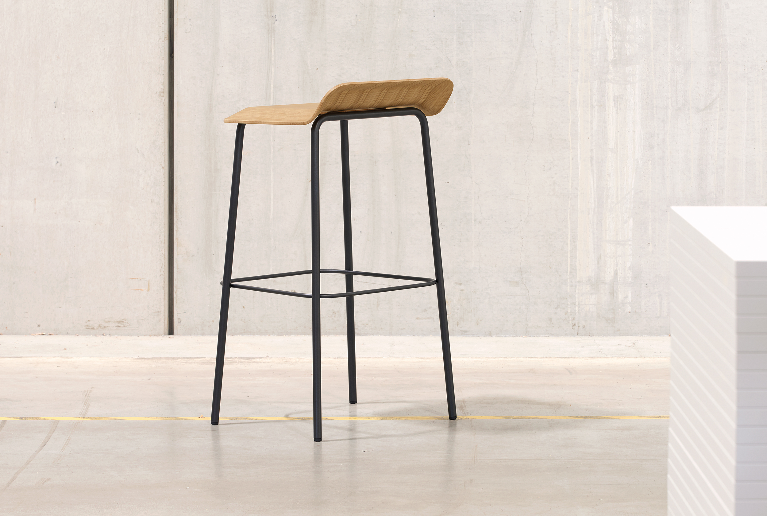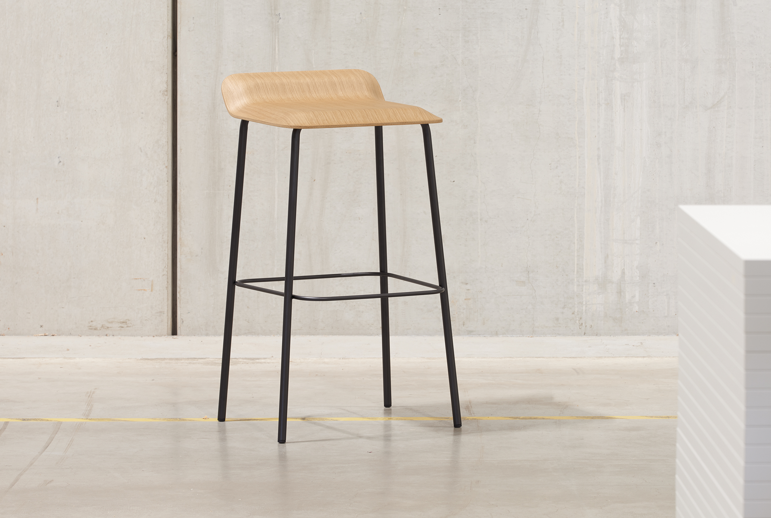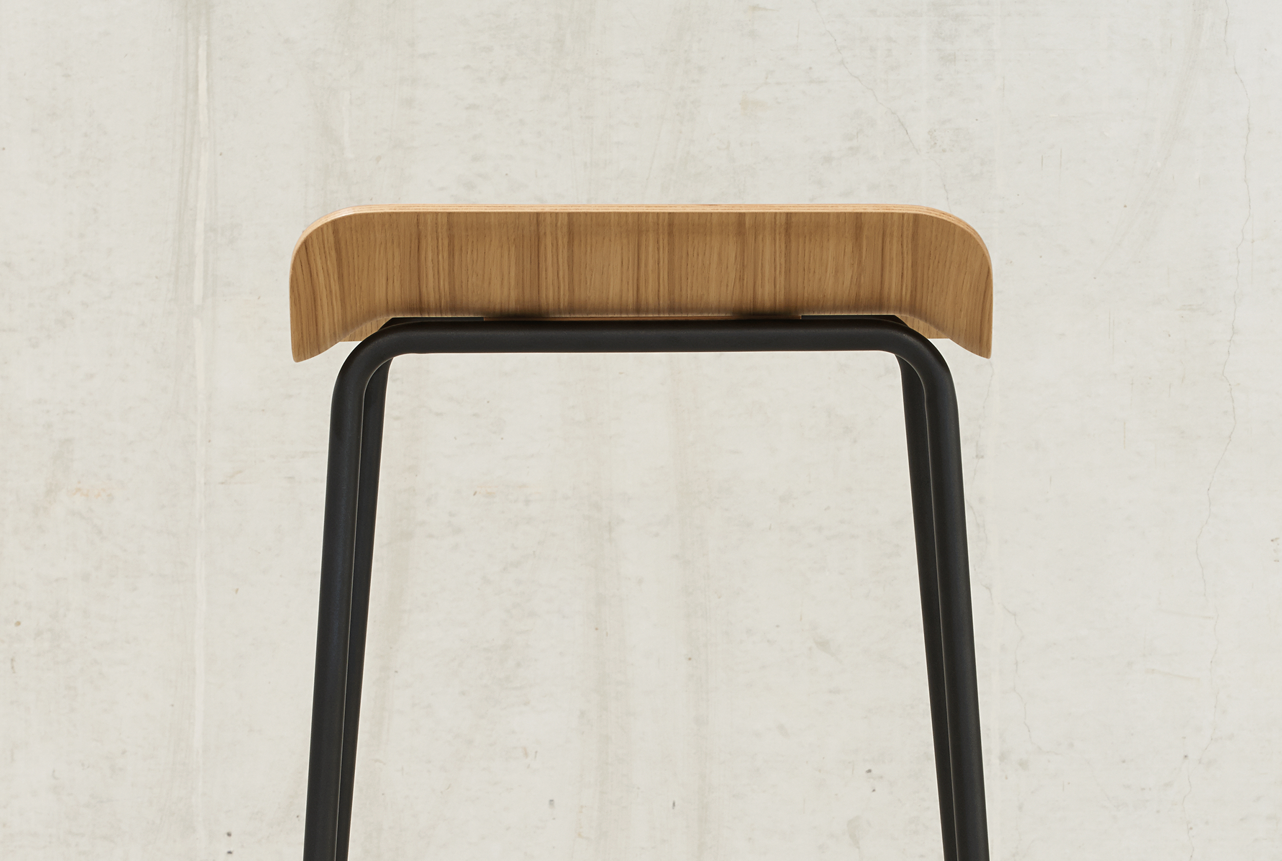 The REISS Trailo® Barstool in the wooden version is characterised by its lightness and clarity. The open-pore lacquered oak veneer of the surface is emphasised by the discreet tubular steel frame and is also pleasant to the touch. Designed for short meetings and/or breaks in the cafeteria, it creates a sophisticated contrast to the plain colours of the REISS Trailo® mid-zone table. Thanks to 3D technology, the barstool only requires 6 layers of veneer, which saves resources and reduces weight without sacrificing stability. The striped plywood edge gives the chair shell a modern character.