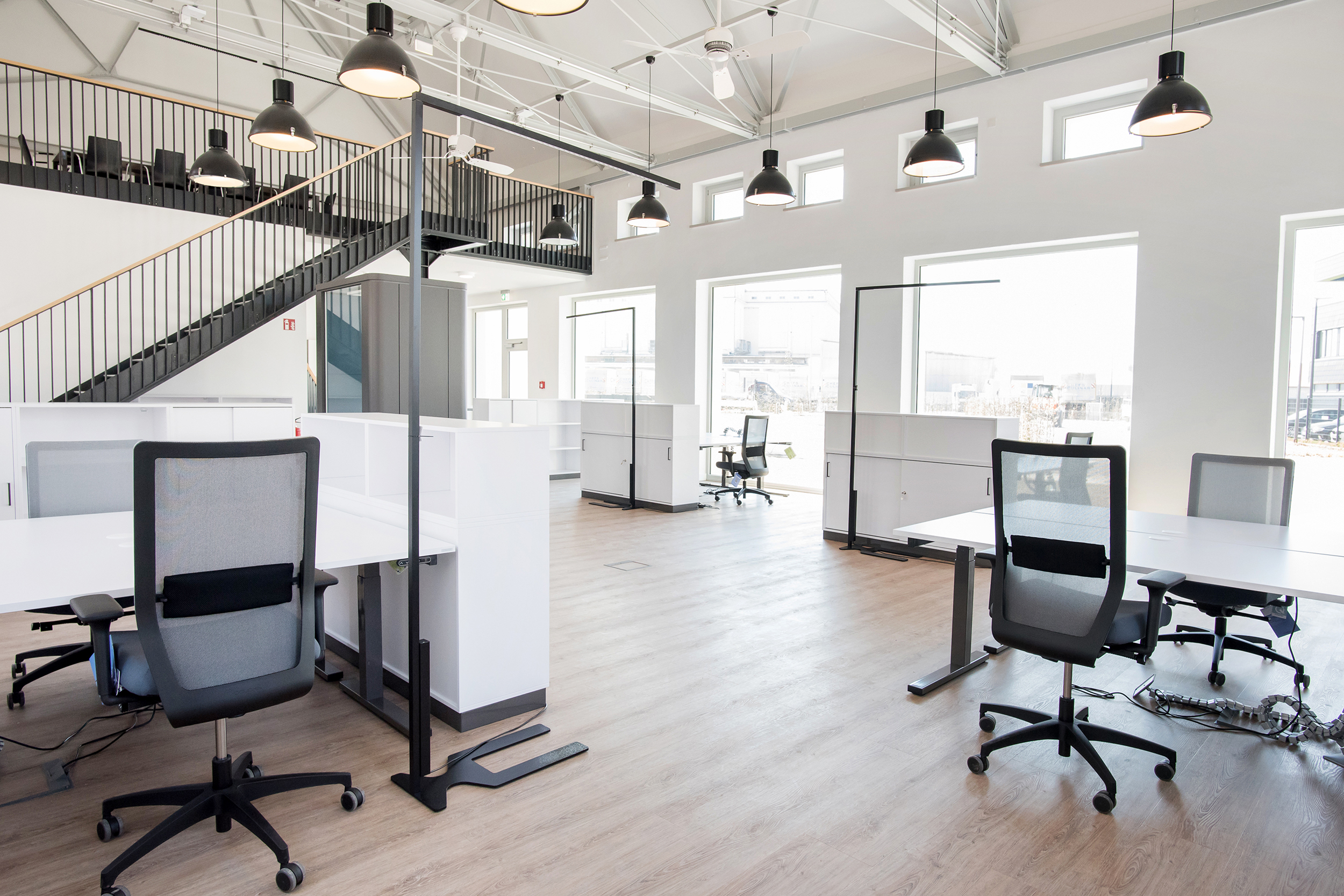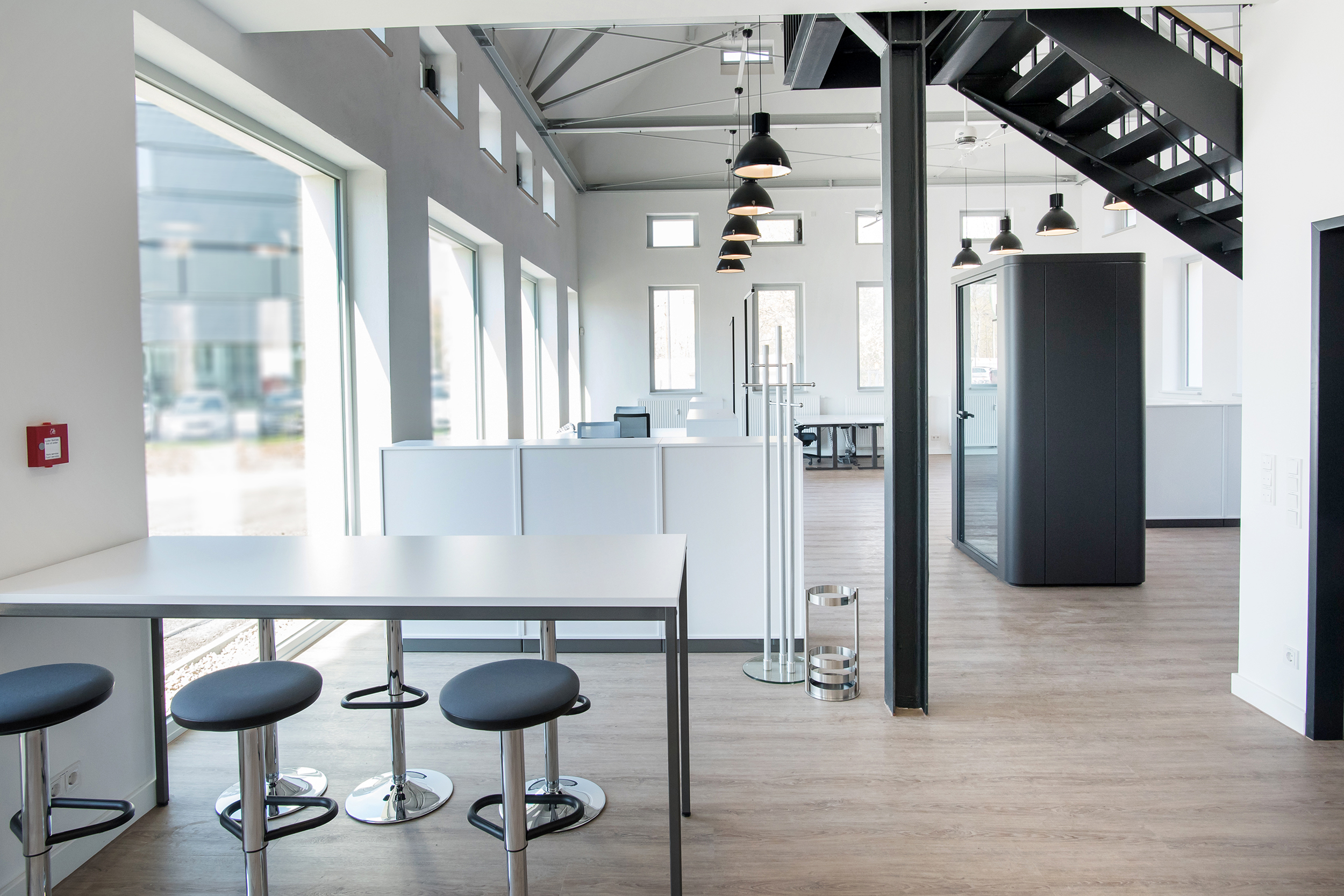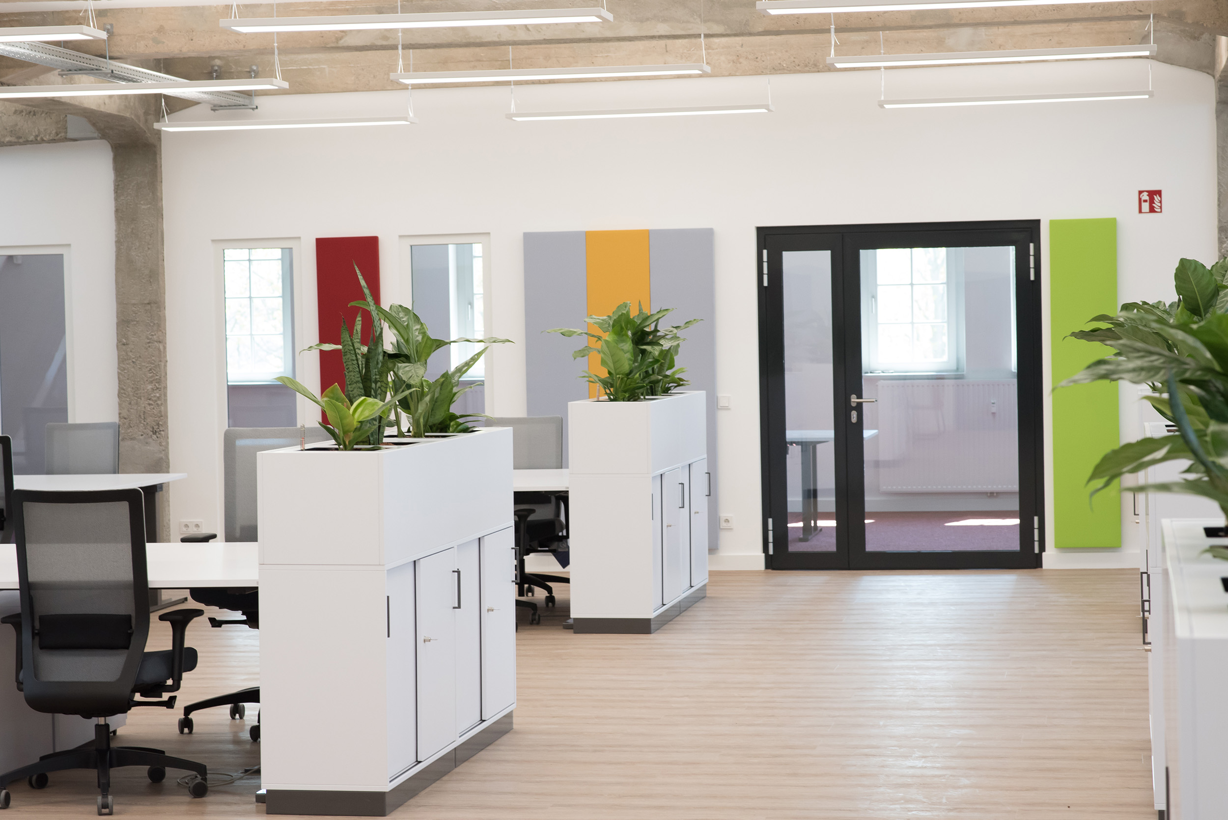 Le design sobre des bureaux, avec des meubles blancs, quelques touches de couleur et des plantes vertes, met en valeur le caractère historique du bâtiment. Les postes de travail, répartis en zones, sont équipés de tables Eco N2 et Avaro Q Motortischen et de caissons à roulettes de REISS. Les espaces sont délimités par des armoires à portes coulissantes avec des jardinières. Au départ du bureau open space se trouve une grande salle de réunion avec une table de réunion REISS Eco N2 à quatre doubles colonnes. Les bureaux individuels offrent beaucoup d'espace de rangement pour les documents importants grâce aux armoires et étagères REISS. Un projet où l'architecture et le mobilier forment une symbiose parfaite. (Photos : Annett Goralski)