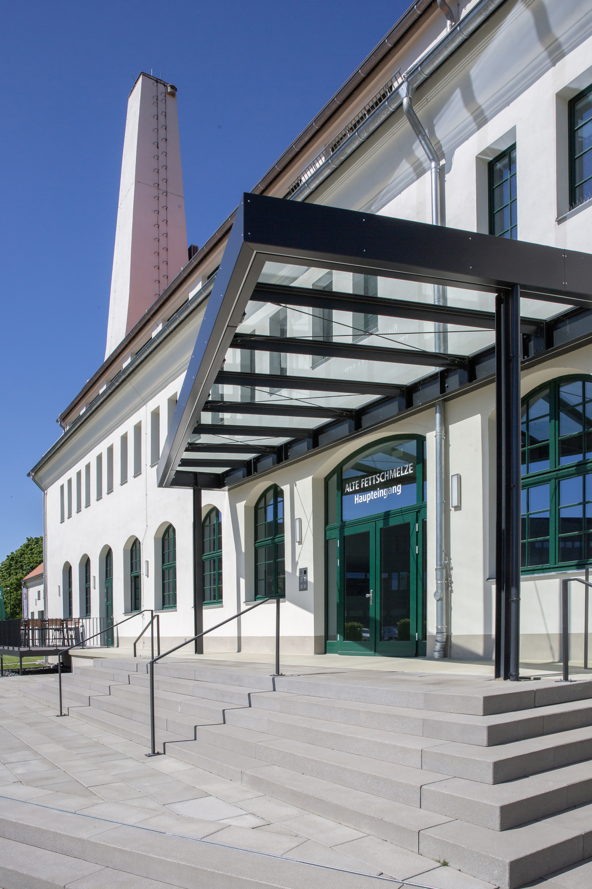 Le site de l'Ostra-Areal à Dresde abritait autrefois le plus grand abattoir d'Europe. L'ensemble des bâtiments de l'abattoir municipal, conçu par Hans Erlwein, architecte renommé de Dresde, a été progressivement rénové depuis 1999 et affecté à de nouveaux usages, notamment comme parc des expositions et lieu d'événements. Le bâtiment classé monument historique de l'« Alte Fettschmelze » (ancienne fonderie) a été réveillé de son sommeil en 2020 et transformé en un immeuble de bureaux moderne, dans lequel notre agence en ligne Webneo a notamment trouvé un nouveau domicile.