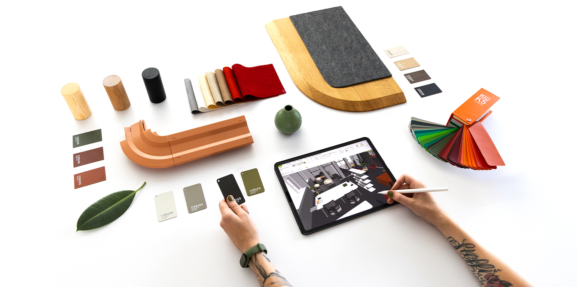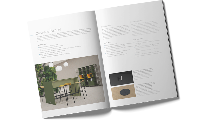 La table de réunion REISS Centuro Teampunkt s'adapte de manière flexible à différents concepts d'aménagement et tailles d'équipes. Sa construction haut de gamme, avec une paroi extérieure de 18 mm d'épaisseur et une paroi intérieure de 25 mm d'épaisseur, lui confère stabilité et élégance. La couleur de la décoration intérieure et extérieure peut être personnalisée, et la rampe métallique est disponible dans de nombreuses couleurs poudrées, ce qui offre une liberté créative supplémentaire.