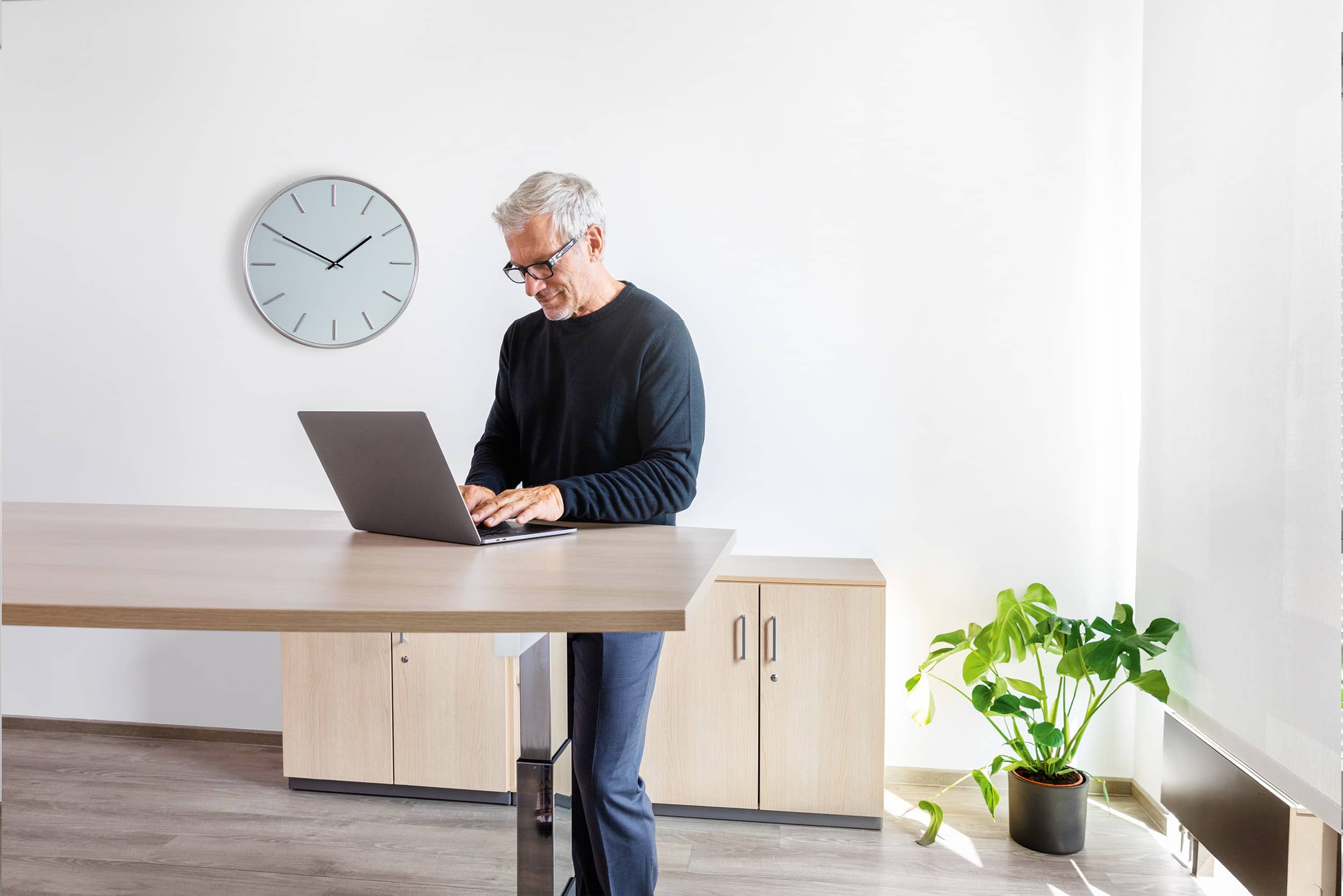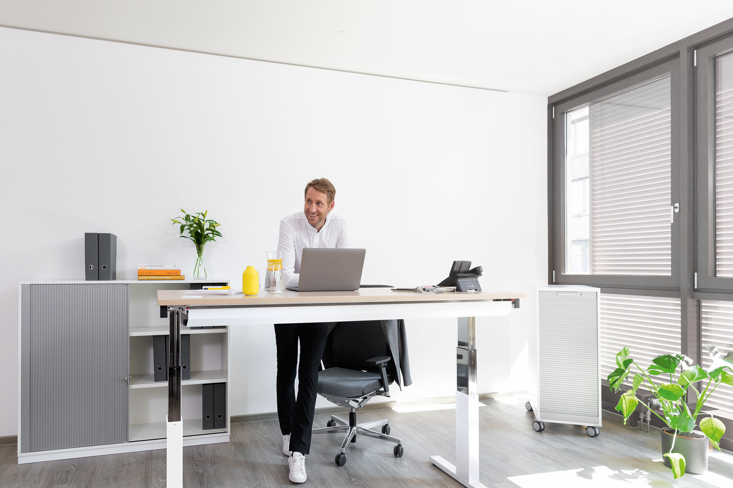 Höhenverstellbarer Schreibtisch mit Liftschnellverstellung.