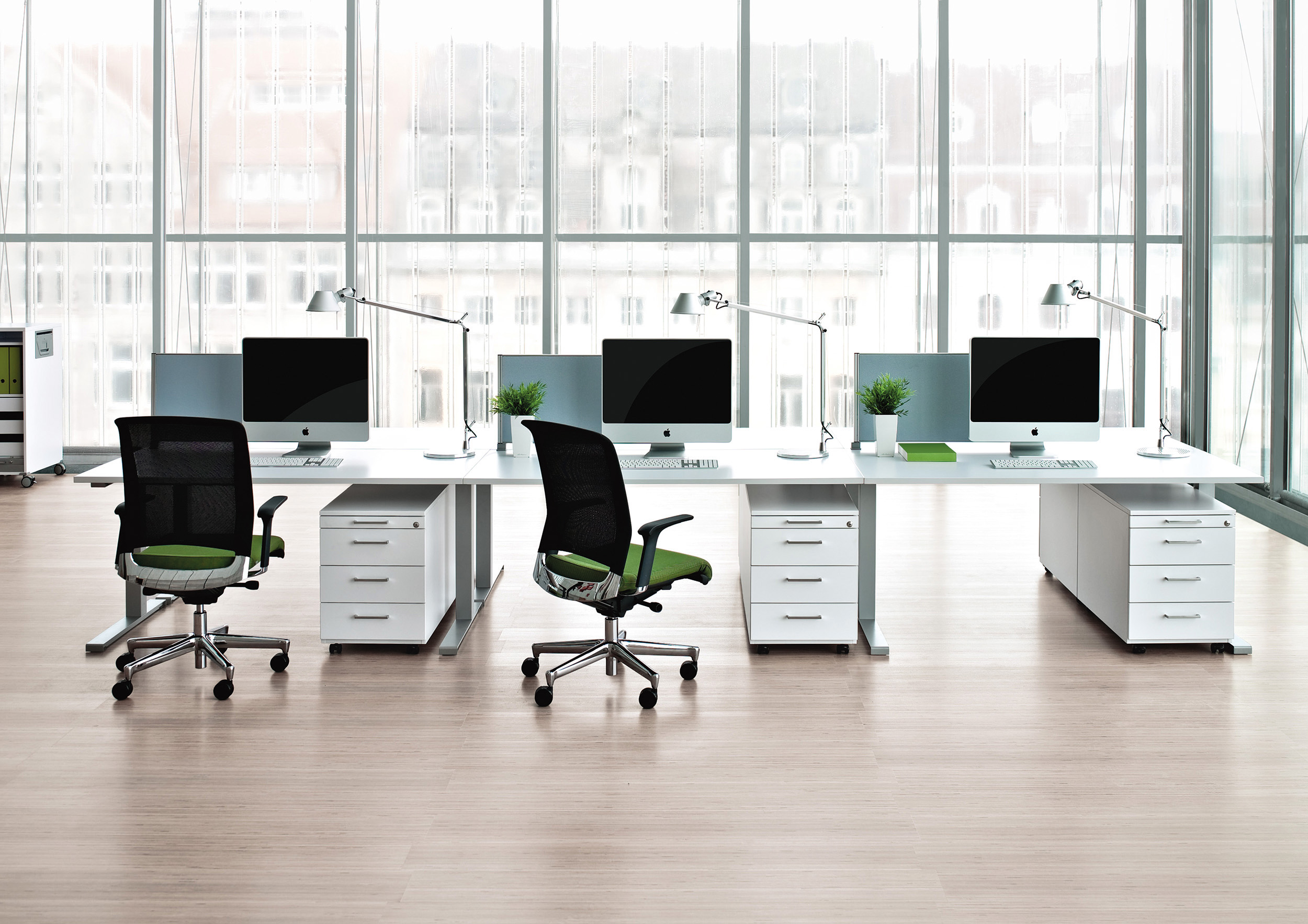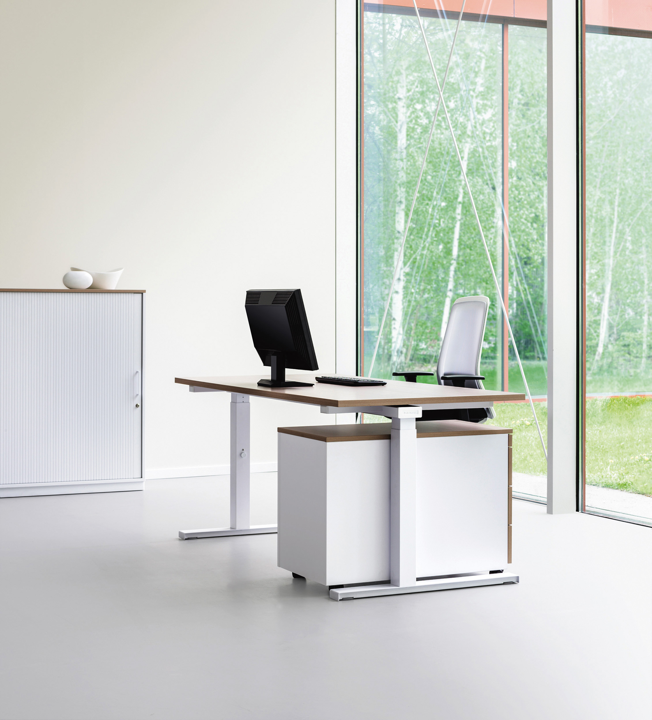 Im Raster höheneinstellbarer Schreibtisch.