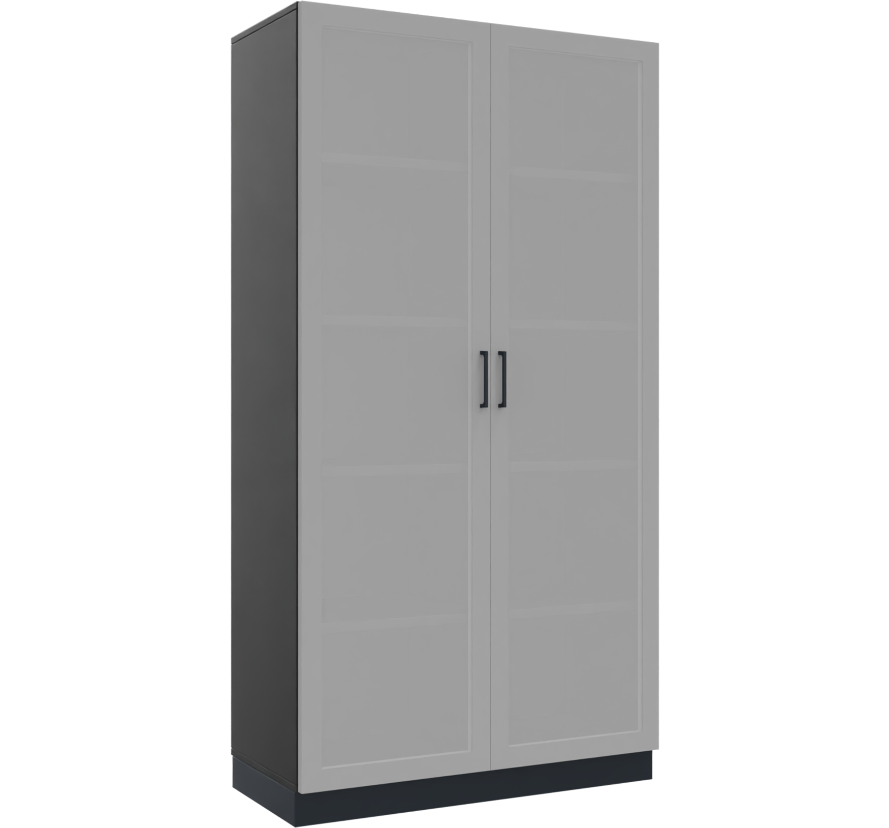 Glastüren verleihen dem Schrank eine elegante Optik und können mit klarem Glas auch als Vitrine genutzt werden. Der Inhalt ist bei geschlossener Tür sichtbar, was die Suche nach bestimmten Gegenständen erleichtert. Für etwas mehr Sichtschutz eignen sich Glastüren aus satiniertem Glas.