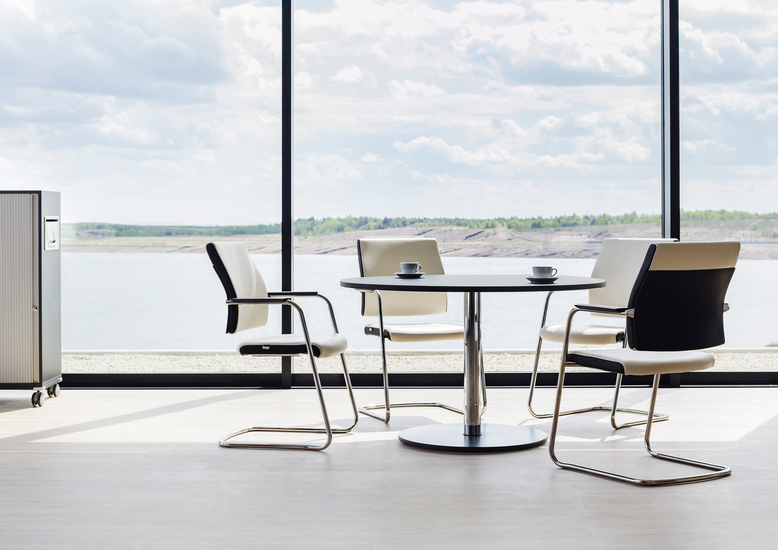 REISS Novo bringt Leichtigkeit und Funktionalität in den Loungebereich. Mit seiner kompakten Bauweise und der stabilen Einsäule bietet er eine platzsparende und dennoch stilvolle Tischlösung für entspannte Arbeits- oder Pausenzonen. Seine klare Formgebung und die sorgfältig ausgewählten Materialien fügen sich harmonisch in jede moderne Lounge- oder Empfangszone ein. REISS Novo ist robust und stabil, perfekt geeignet für informelle Gespräche, Kaffeepausen oder als flexible Arbeitsstation im Lounge-Bereich.
